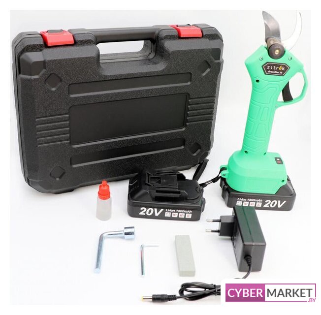 | Комплектация | Секатор - 1 шт.АКБ 1.5 Ач - 2 шт.Зарядное устройство - 1 шт.Шестигранный ключ - 1 шт.Торцовочный ключ - 1 шт.Масленка - 1 шт.Точильный камень - 1 шт.Руководство по эксплуатации - 1 шт.Кейс - 1 шт. |