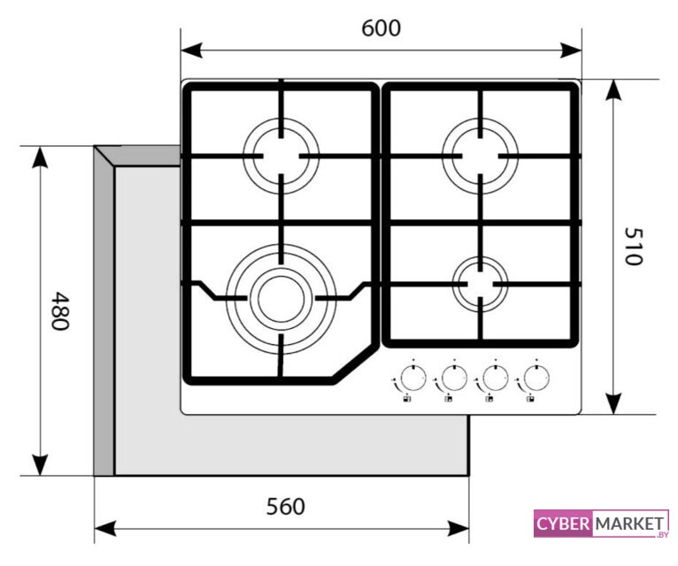 газовая на 4 конфорки, закаленное стекло, автоматический электроподжиг, газ-контроль, решетки: чугун, независимая установка, размеры (ШхГ): 67x52.5 см
