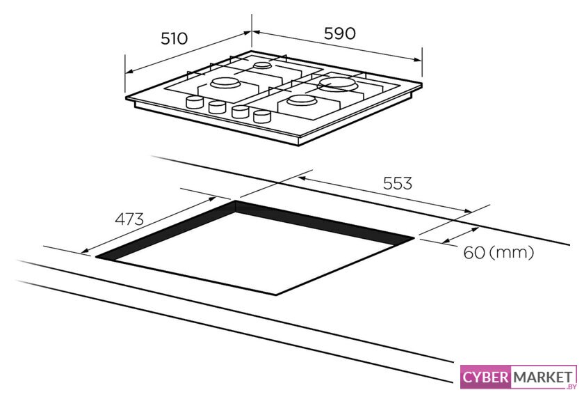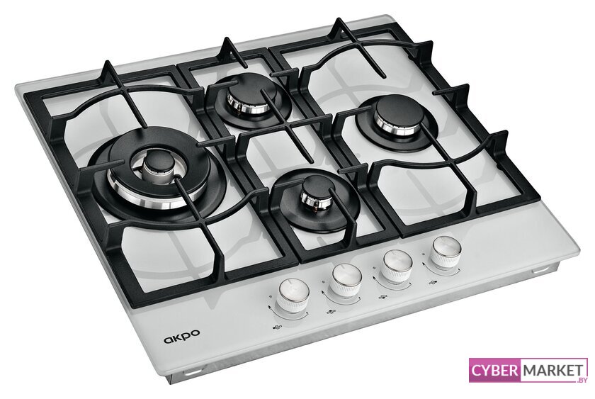 газовая на 4 конфорки, закаленное стекло, мощность: 7900 Вт, автоматический электроподжиг, газ-контроль, решетки: чугун, независимая установка, размеры (ШхГ): 61x51 см