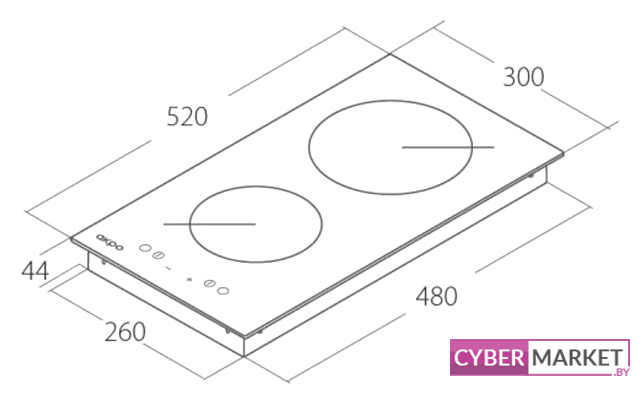 HiLight на 2 конфорки, cтеклокерамика, мощность: 3000 Вт, независимая установка