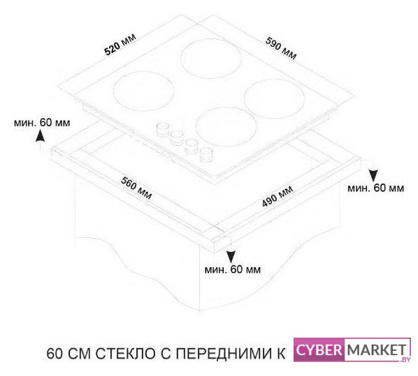 газовая на 4 конфорки, закаленное стекло, мощность: 7500 Вт, автоматический электроподжиг, газ-контроль, решетки: чугун, независимая установка, размеры (ШхГ): 60x52.5 см