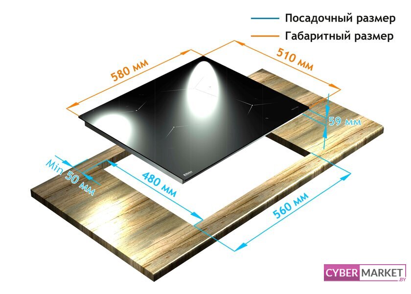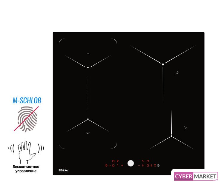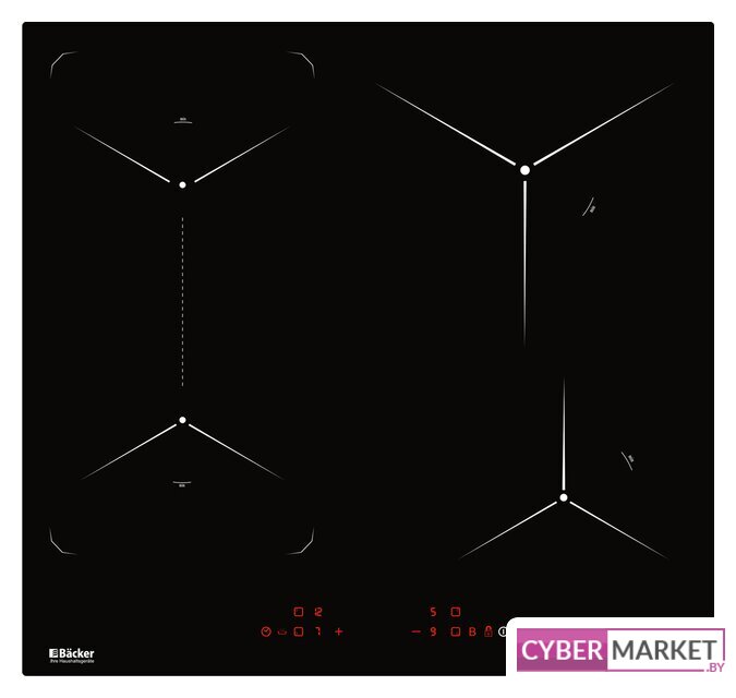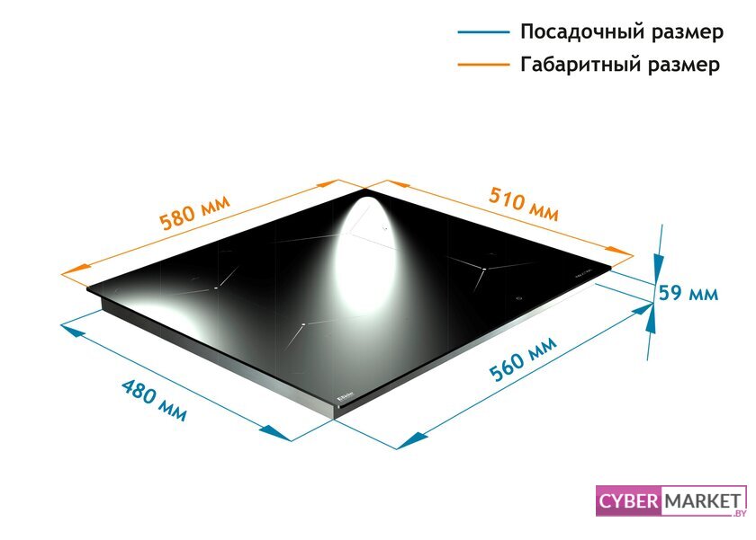 индукционная на 4 конфорки, cтеклокерамика, мощность: 6800 Вт, независимая установка, размеры (ШхГ): 59x52 см