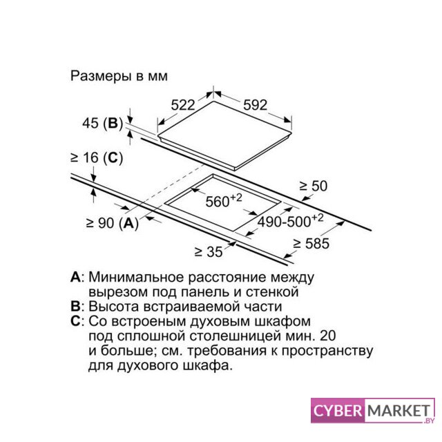HiLight на 4 конфорки, cтеклокерамика, мощность: 6400 Вт, автоматика закипания, независимая установка, размеры (ШхГ): 57.5x50.5 см