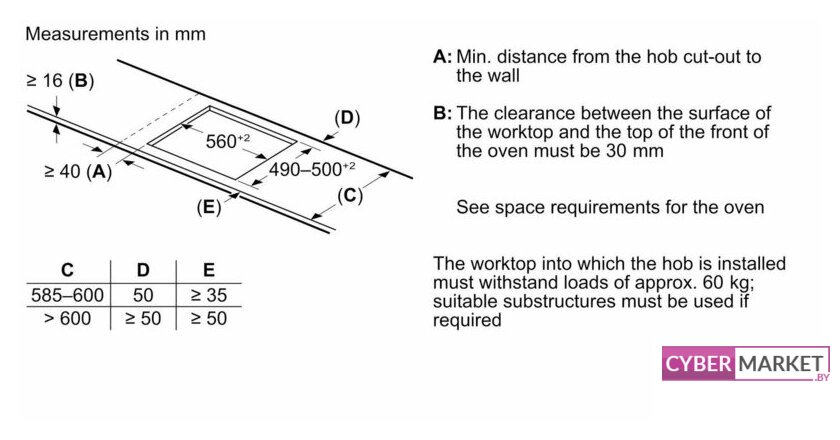 | Подробная информация о конфорках | 1 x 1.6 (2.2) kW, 1 x 2.5 (3.7) kW, 2 x 2.0 (3.1) kW |