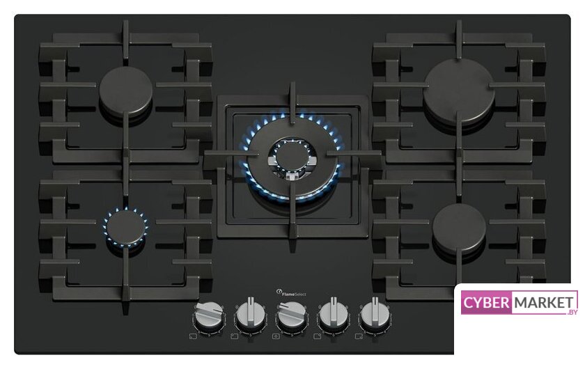 газовая на 5 конфорок, закаленное стекло, мощность: 10950 Вт, автоматический электроподжиг, газ-контроль, решетки: чугун, независимая установка, размеры (ШхГ): 85x51 см