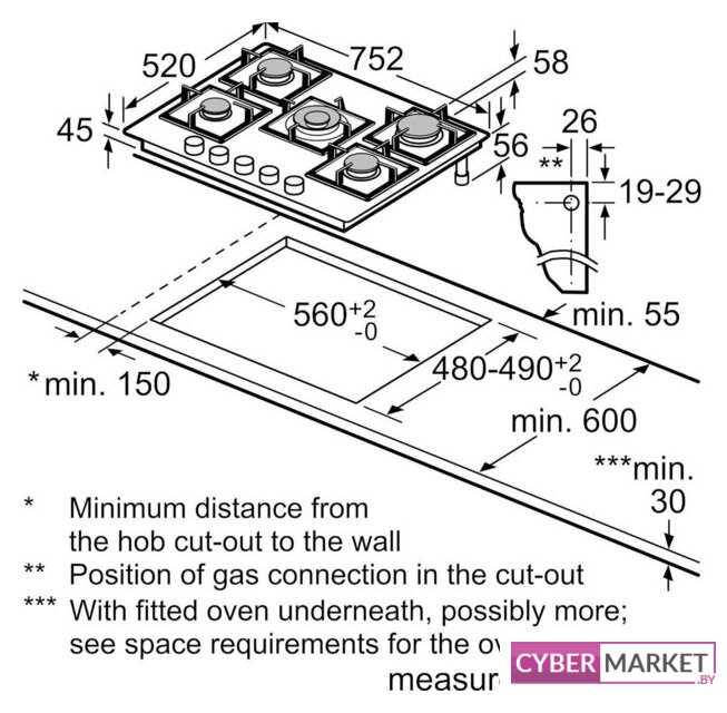 газовая на 4 конфорки, закаленное стекло, мощность: 7500 Вт, автоматический электроподжиг, газ-контроль, решетки: чугун, независимая установка, размеры (ШхГ): 59x52 см