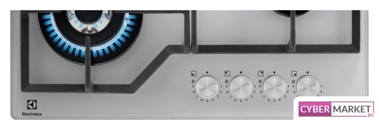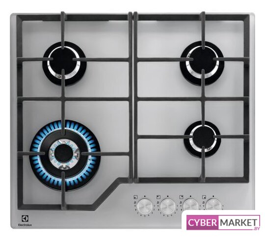 газовая на 4 конфорки, закаленное стекло, мощность: 8000 Вт, автоматический электроподжиг, газ-контроль, решетки: чугун, размеры (ШхГ): 59x52 см