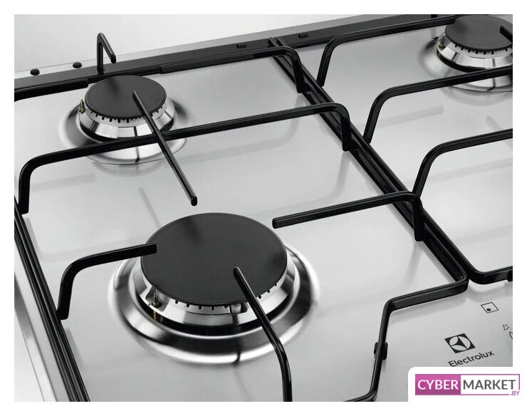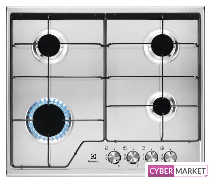газовая на 4 конфорки, нержавеющая сталь, мощность: 9550 Вт, автоматический электроподжиг, газ-контроль, решетки: чугун