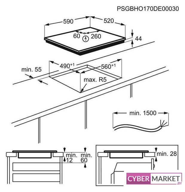 индукционная на 4 конфорки, cтеклокерамика, независимая установка, размеры (ШхГ): 59x52 см