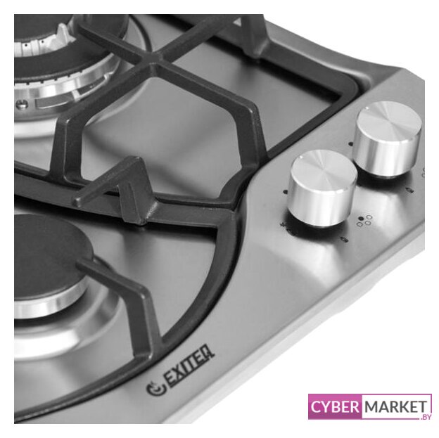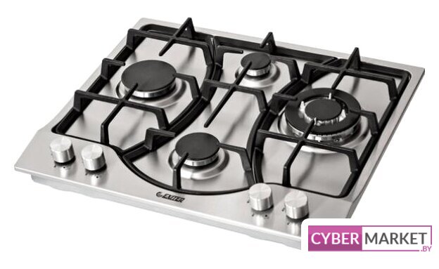 газовая на 4 конфорки, закаленное стекло, мощность: 7400 Вт, автоматический электроподжиг, газ-контроль, решетки: чугун