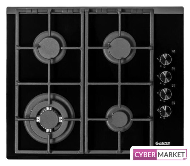 газовая на 4 конфорки, закаленное стекло, мощность: 7400 Вт, автоматический электроподжиг, газ-контроль, решетки: чугун