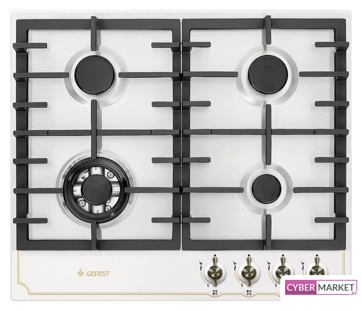 газовая на 4 конфорки, закаленное стекло, мощность: 9800 Вт, автоматический электроподжиг, газ-контроль, решетки: чугун, независимая установка, размеры (ШхГ): 58x52 см
