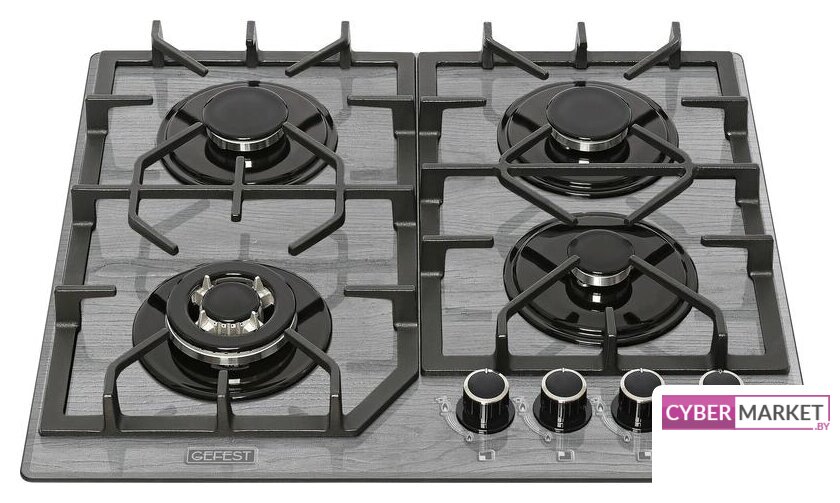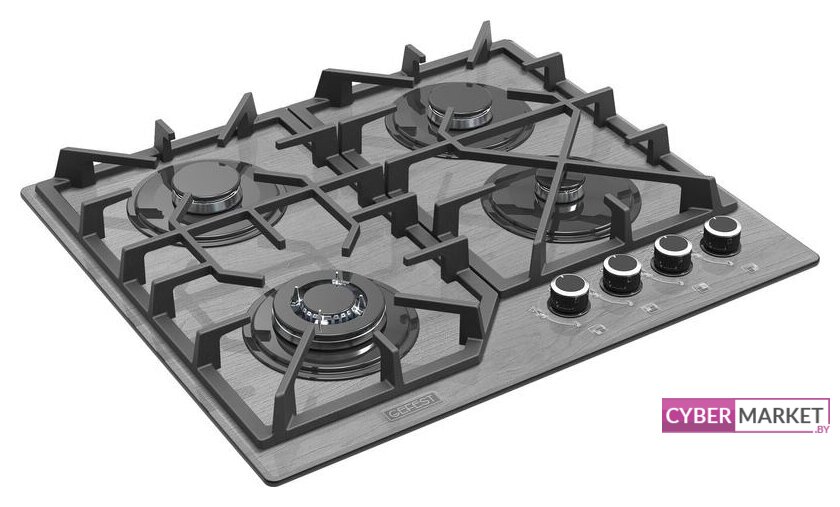 газовая на 4 конфорки, закаленное стекло, мощность: 8650 Вт, автоматический электроподжиг, газ-контроль, решетки: чугун