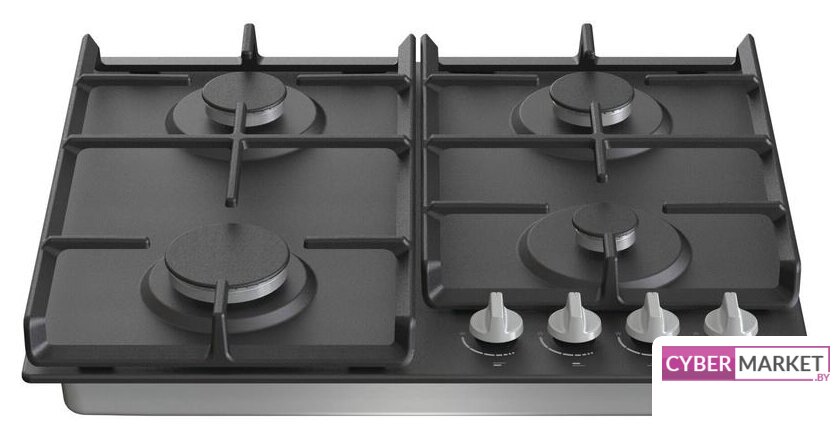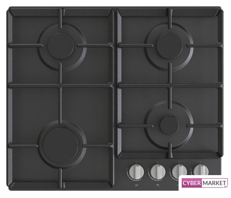 газовая на 4 конфорки, закаленное стекло, мощность: 8300 Вт, автоматический электроподжиг, газ-контроль, решетки: чугун, размеры (ШхГ): 60x52 см