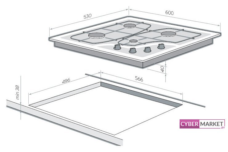 газовая на 4 конфорки, закаленное стекло, мощность: 7400 Вт, автоматический электроподжиг, газ-контроль, решетки: чугун, независимая установка, размеры (ШхГ): 59x52 см