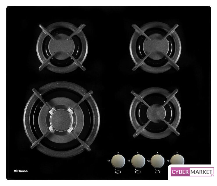 газовая на 4 конфорки, закаленное стекло, мощность: 7400 Вт, автоматический электроподжиг, газ-контроль, решетки: чугун
