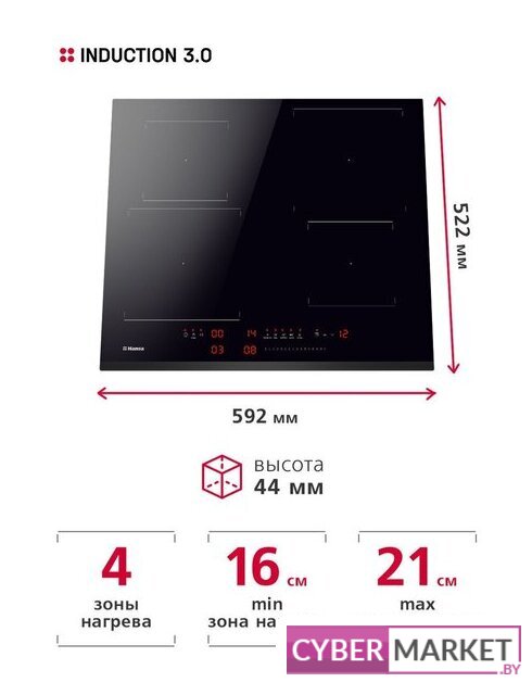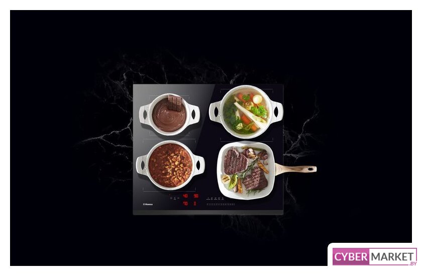 индукционная на 4 конфорки, cтеклокерамика, мощность: 7400 Вт, независимая установка, размеры (ШхГ): 59x52 см