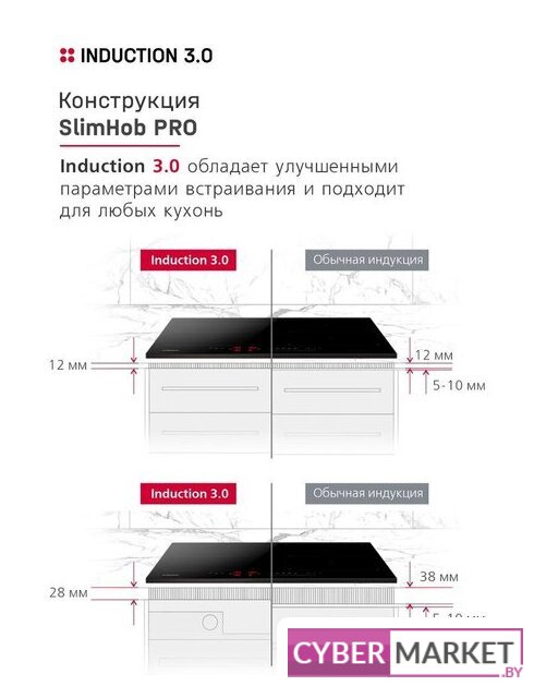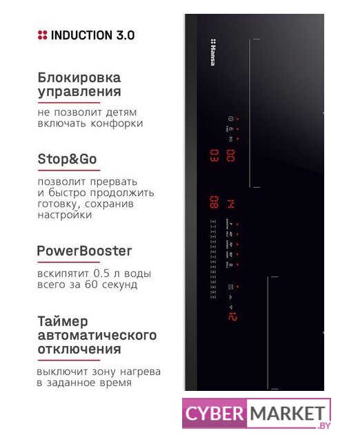 индукционная на 3 конфорки, cтеклокерамика, мощность: 4600 Вт, независимая установка, размеры (ШхГ): 59.2x52.2 см