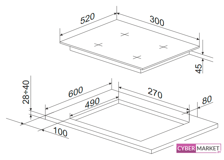 | Подробная информация о конфорках | 2800 Вт1000 Вт |