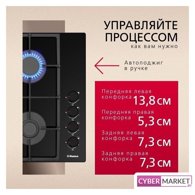 | Подробная информация о конфорках | 1×138 мм, 1×53 мм, 1×73 мм, 1×73 мм |