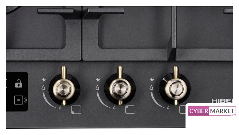 | Подробная информация о конфорках | Одна конфорка WOK с тройным рядом пламени, мощностью 3.4 кВт, две стандартные газовые конфорки. |