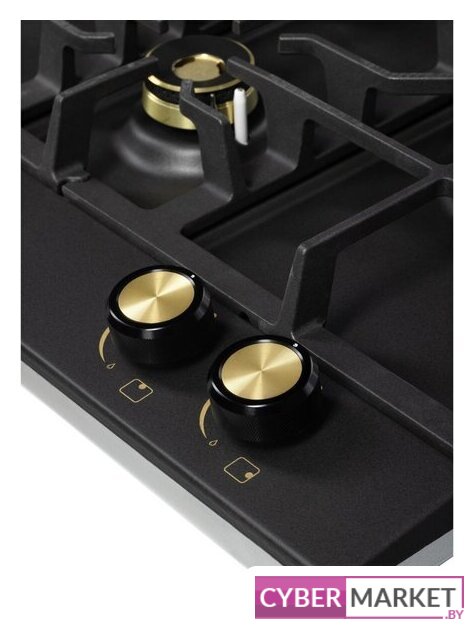 газовая на 4 конфорки, закаленное стекло, мощность: 8650 Вт, автоматический электроподжиг, газ-контроль, решетки: чугун