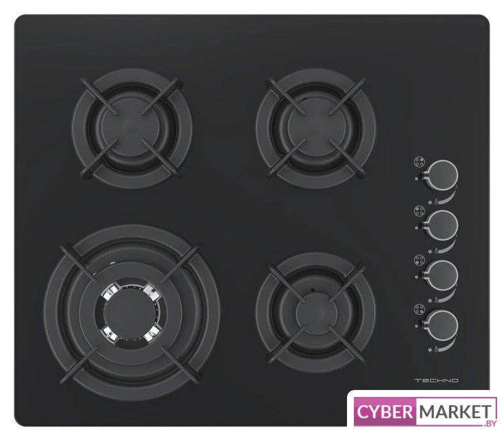 газовая на 4 конфорки, закаленное стекло, автоматический электроподжиг, газ-контроль, решетки: чугун, независимая установка, размеры (ШхГ): 63.5x52 см