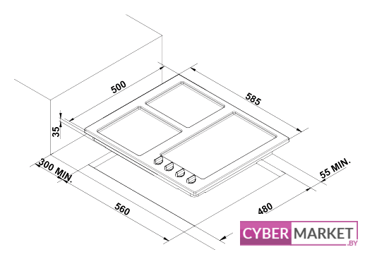 газовая на 4 конфорки, закаленное стекло, мощность: 7000 Вт, автоматический электроподжиг, газ-контроль, решетки: чугун, независимая установка, размеры (ШхГ): 59x52.2 см
