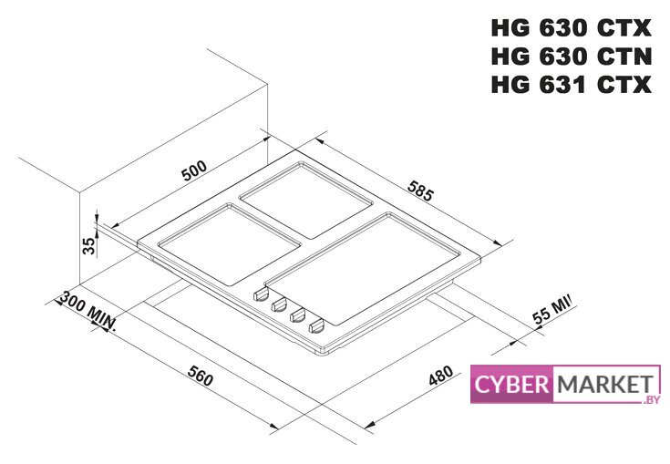газовая на 4 конфорки, нержавеющая сталь, мощность: 8000 Вт, автоматический электроподжиг, газ-контроль, решетки: чугун, независимая установка, размеры (ШхГ): 59x51 см