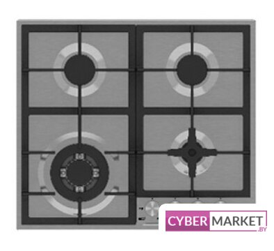 газовая на 4 конфорки, закаленное стекло, мощность: 8300 Вт, автоматический электроподжиг, газ-контроль, решетки: чугун, размеры (ШхГ): 60x52 см