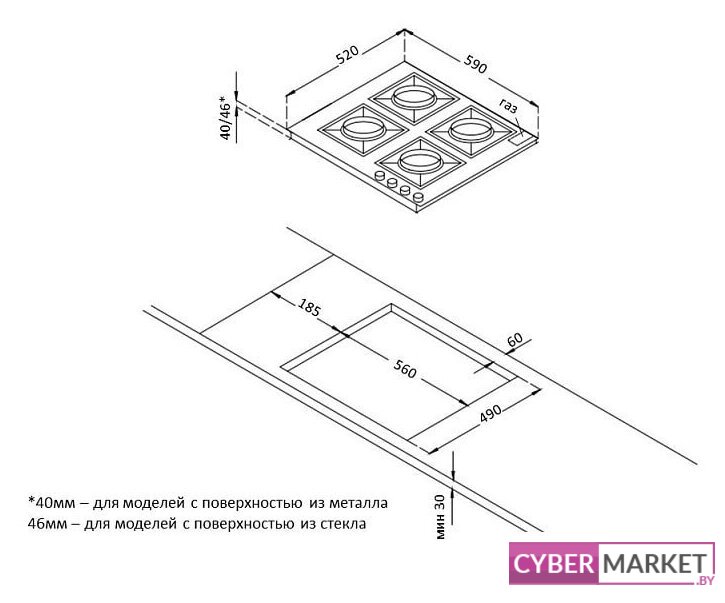 газовая на 4 конфорки, закаленное стекло, мощность: 9100 Вт, автоматический электроподжиг, газ-контроль, решетки: чугун, независимая установка, размеры (ШхГ): 59x51.5 см