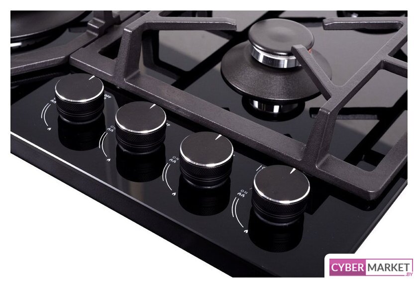 газовая на 4 конфорки, закаленное стекло, мощность: 8800 Вт, автоматический электроподжиг, газ-контроль, решетки: чугун, независимая установка, размеры (ШхГ): 58x50 см