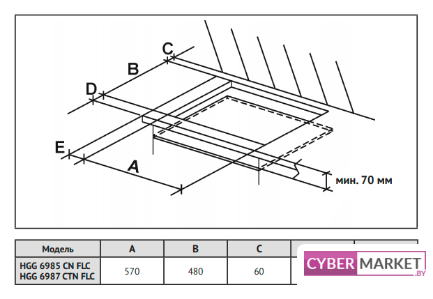 газовая на 4 конфорки, закаленное стекло, мощность: 7800 Вт, автоматический электроподжиг, газ-контроль, решетки: чугун, независимая установка, размеры (ШхГ): 59x51 см