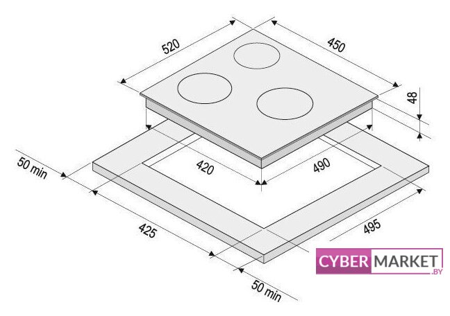 | Подробная информация о конфорках | передняя левая: 200 мм, 1,8 кВтзадняя левая: 165 мм, 1,2 кВтзадняя правая: 200 мм, 1,8 кВт |