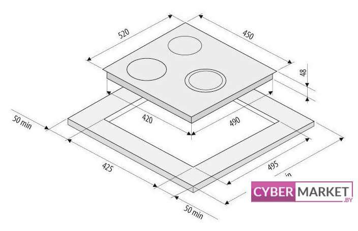 HiLight на 3 конфорки, cтеклокерамика, мощность: 4200 Вт, независимая установка, размеры (ШхГ): 45x52 см