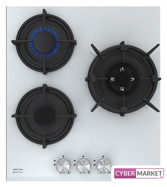 газовая на 3 конфорки, закаленное стекло, мощность: 6500 Вт, автоматический электроподжиг, газ-контроль, решетки: чугун, независимая установка, размеры (ШхГ): 44x51 см