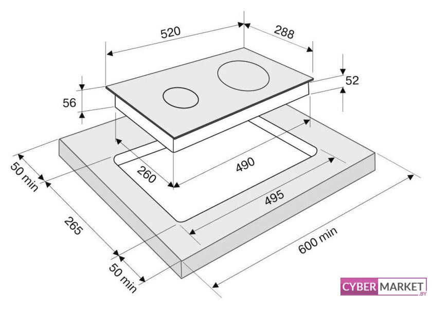индукционная на 2 конфорки, cтеклокерамика, мощность: 3500 Вт, независимая установка, размеры (ШхГ): 28.8x52 см