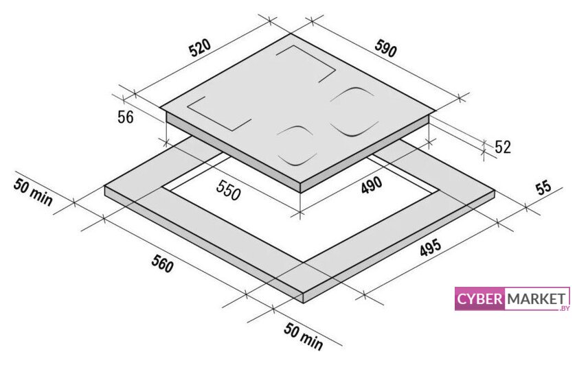 индукционная на 4 конфорки, cтеклокерамика, мощность: 7350 Вт, независимая установка, размеры (ШхГ): 59.2x52.2 см