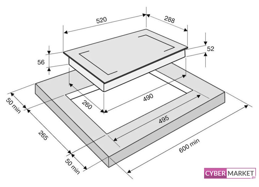 индукционная на 4 конфорки, cтеклокерамика, мощность: 7200 Вт, независимая установка, размеры (ШхГ): 59x52 см