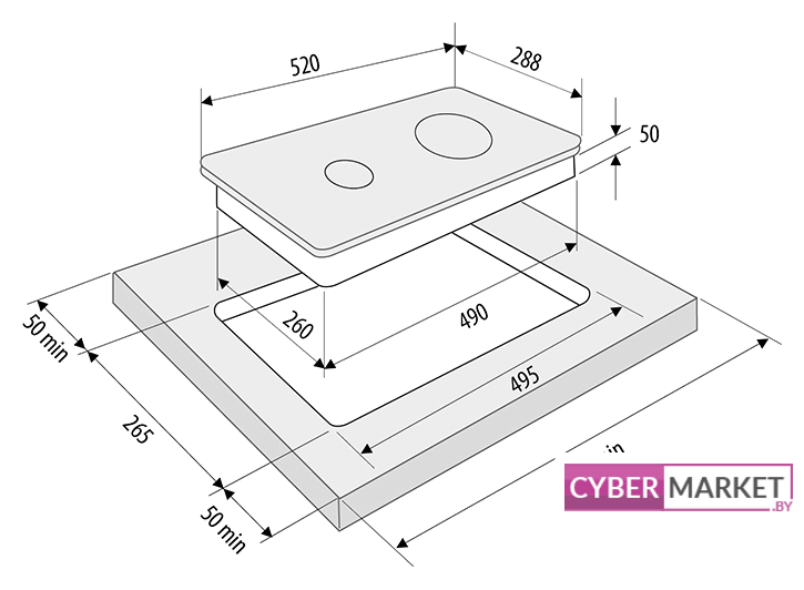 индукционная на 2 конфорки, cтеклокерамика, мощность: 3500 Вт, независимая установка, размеры (ШхГ): 28.8x52 см
