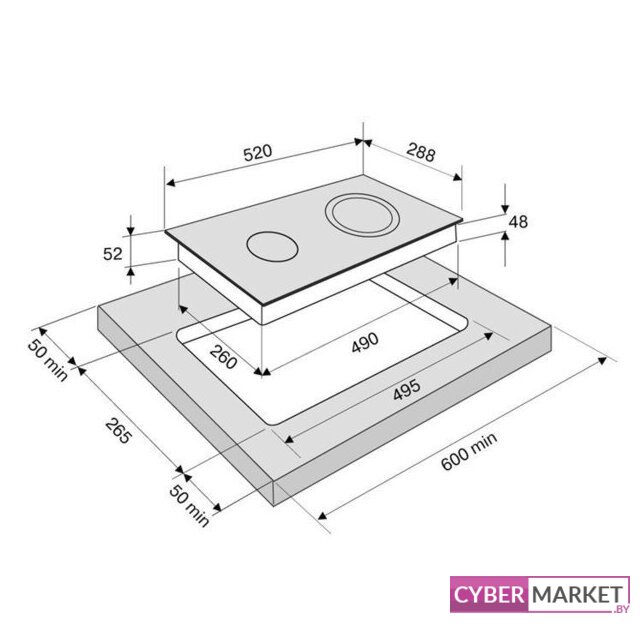 HiLight на 2 конфорки, cтеклокерамика, мощность: 3000 Вт, независимая установка, размеры (ШхГ): 28.8x52 см