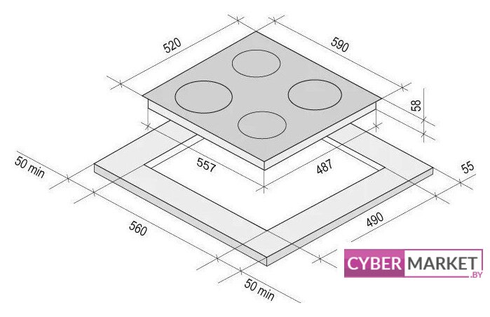 индукционная на 4 конфорки, cтеклокерамика, мощность: 7400 Вт, независимая установка, размеры (ШхГ): 59x52 см