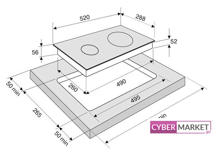 | Подробная информация о конфорках | Дальняя: 210 мм * 2 кВт; Ближняя: 160 мм * 1,5 кВт |