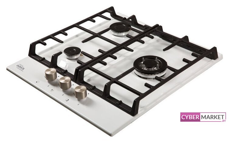 газовая на 2 конфорки, закаленное стекло, мощность: 4300 Вт, автоматический электроподжиг, газ-контроль, решетки: чугун, независимая установка