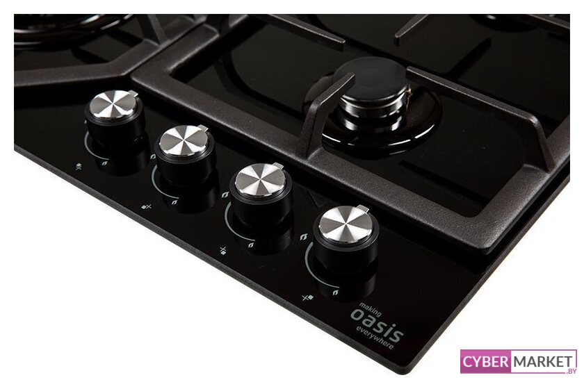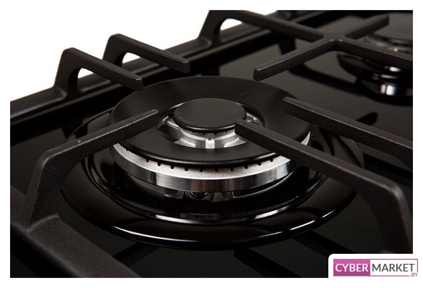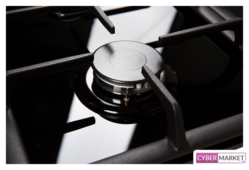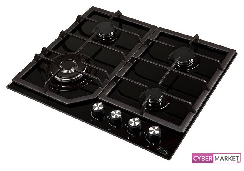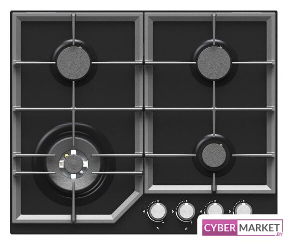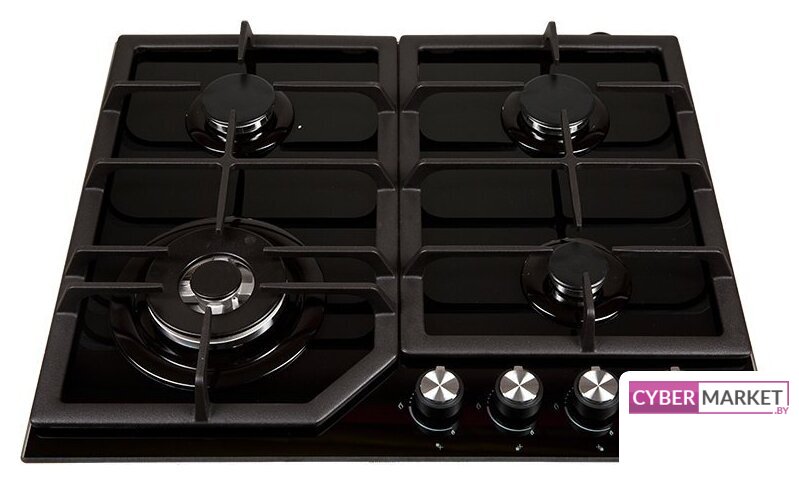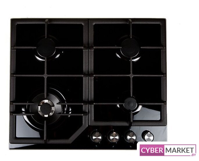 газовая на 4 конфорки, закаленное стекло, мощность: 8650 Вт, автоматический электроподжиг, газ-контроль, решетки: чугун
