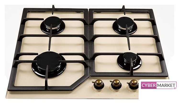 газовая на 4 конфорки, нержавеющая сталь, мощность: 10100 Вт, автоматический электроподжиг, газ-контроль, решетки: чугун, размеры (ШхГ): 60x51 см