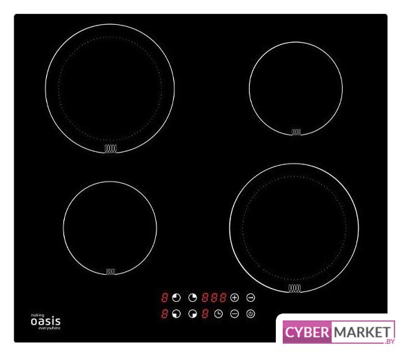 индукционная на 4 конфорки, cтеклокерамика, мощность: 7400 Вт, независимая установка, размеры (ШхГ): 59x52 см