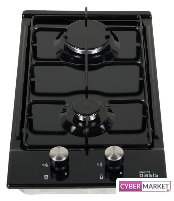 газовая на 2 конфорки, нержавеющая сталь, мощность: 3850 Вт, автоматический электроподжиг, газ-контроль, решетки: эмалированная сталь, независимая установка, размеры (ШхГ): 30x52 см