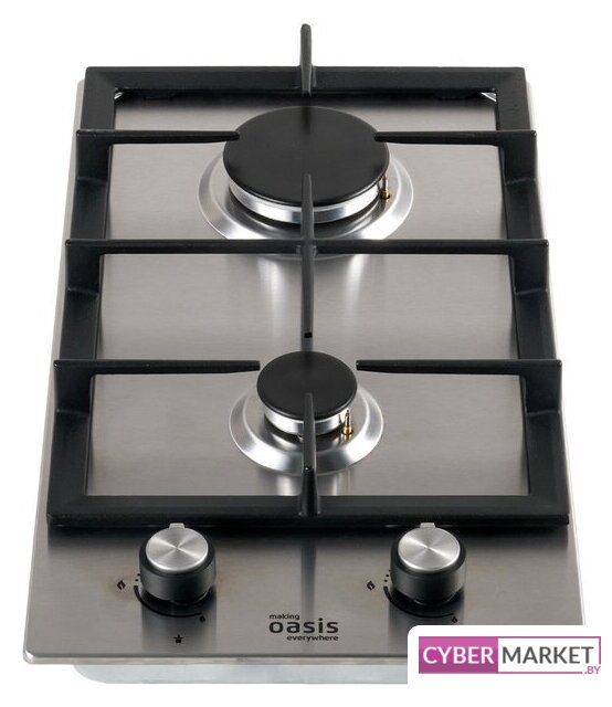 газовая на 2 конфорки, нержавеющая сталь, мощность: 4000 Вт, автоматический электроподжиг, решетки: эмалированная сталь, размеры (ШхГ): 30x51 см