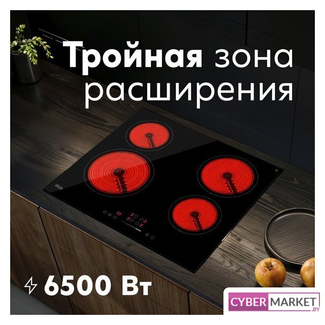 HiLight на 4 конфорки, cтеклокерамика, мощность: 6000 Вт, независимая установка, размеры (ШхГ): 58x51 см